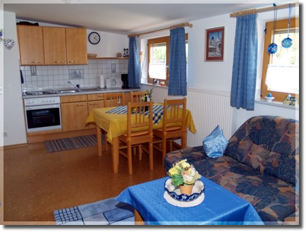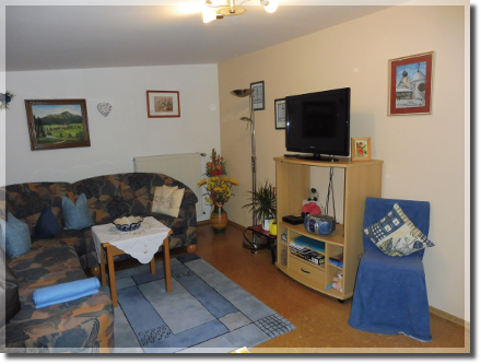 Unsere gemütliche und gepflegte Ferienwohnung hat eine Fläche von 70m² und bietet Platz für 2 bis 4 Personen. Ihnen stehen zwei Schlafzimmer (inkl. Kinderbett), eine große Wohnküche, Bad mit DU/WC sowie Sat-TV und Radio zur Verfügung. Die Bettwäsche und Handtücher werden selbstverständlich kostenlos gestellt. Sie haben die Möglichkeit, das Frühstück gleich mit zu buchen, alterativ können wir Ihnen aber auch einen Brötchenservice anbieten. Am Wochenende gibt es selbstgebackenen Kuchen.